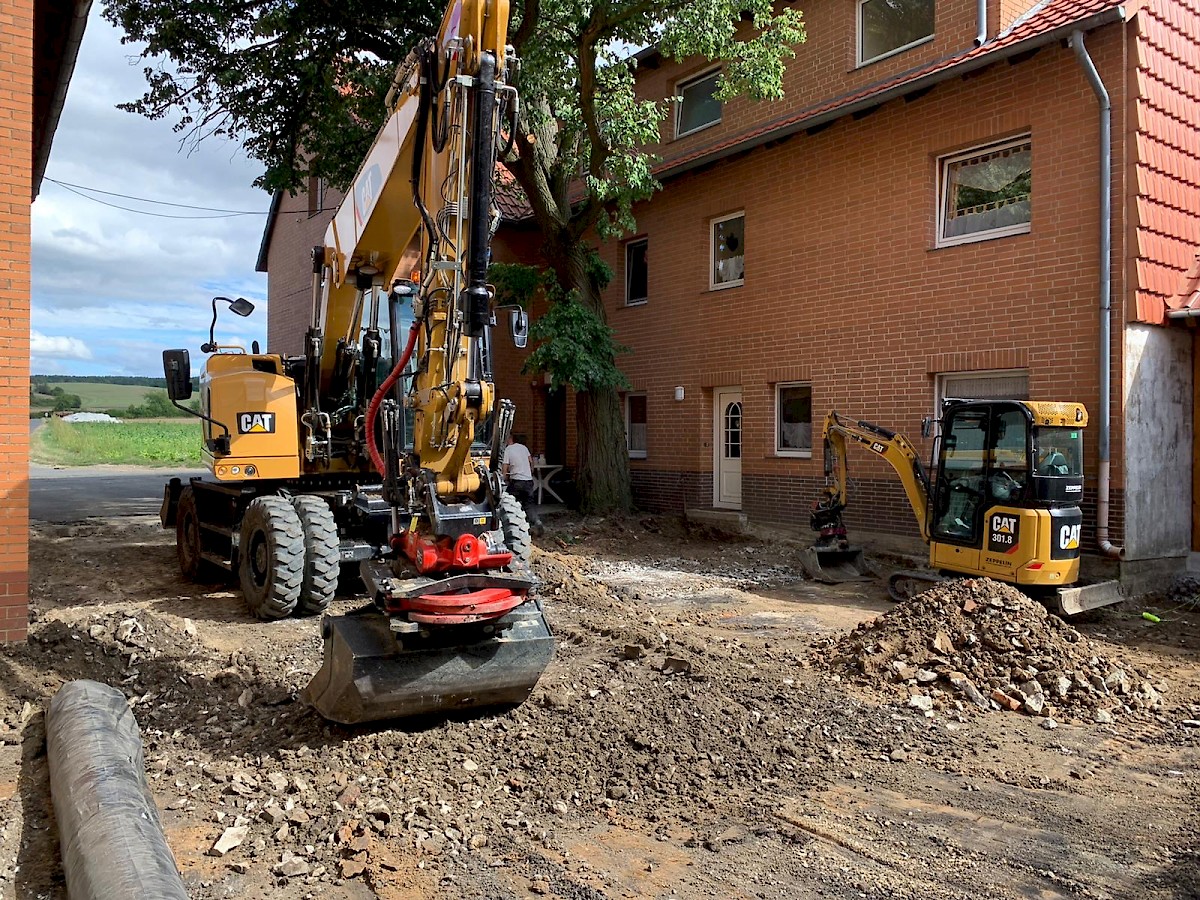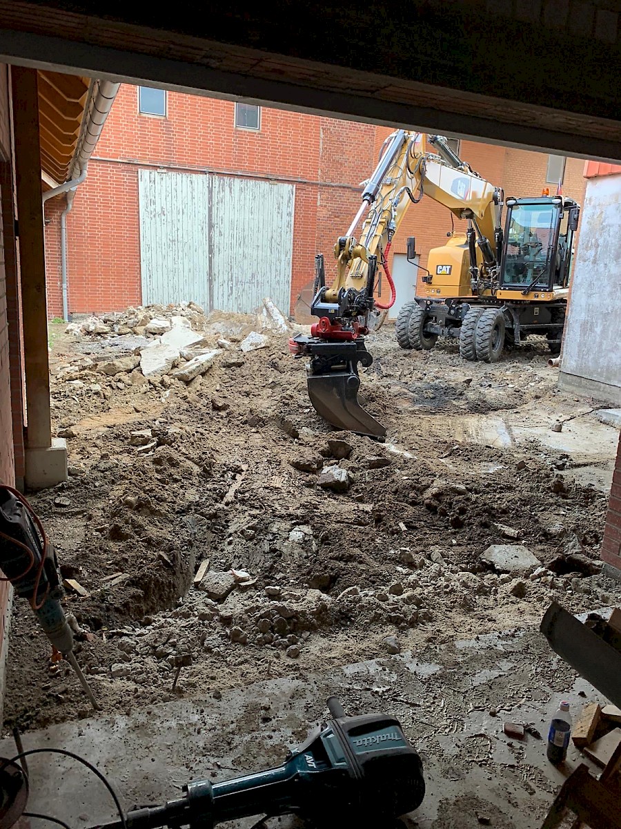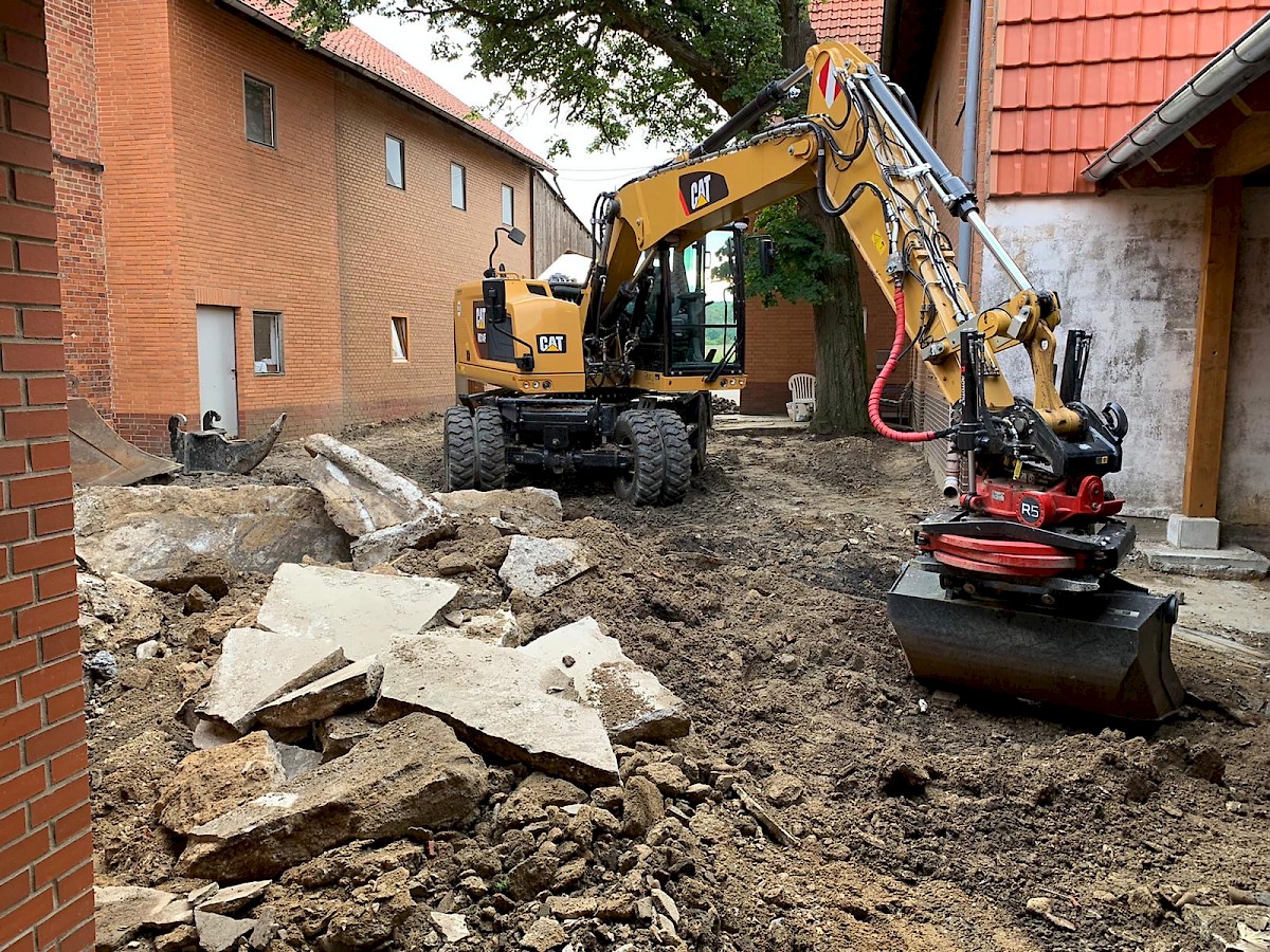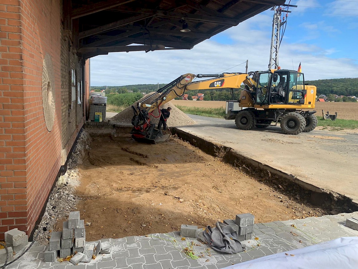 Diese Neugestaltung eines Hofes steht ganz unter dem Motto: neuer, schöner, moderner. Dabei werden die alten Pflastersteine herausgenommen und der gesamte Unterboden ausgetauscht und erneurt. Nach dem Setzen der Borde wird der Hof mit UNI Verbundpflaster aus Beton komplett neu gepflastert.
